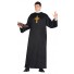 Questo costume da prete per uomo comprende un abito nero con maniche lunghe che scende fin ai piedi. Un colletto bianco completa il vestito per un aspetto più realistico (Bibbia, croce e scarpe non incluse).