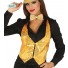 Per un look...brillante! Questo gilet con paillettes dorate è per donna. Le paillettes sono presenti solo sulla parte anteriore mentre sul retro è presente un tessuto a tinta unita dorata. Il gilet è inoltre provvisto di una cinghietta sulla schiena per poterlo adattare al meglio alla tua conformazione fisica. Questo gilet dorato sarà l'accessorio indispensabile per completare il tuo travestimento in occasione di una festa charleston o di un musical!