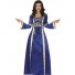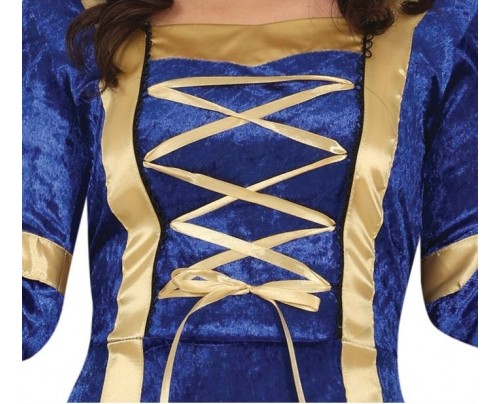 Questo travestimento da nobildonna è composto da un abito lungo blu con decori oro, un laccetto sul busto ti permetterà di regolarlo in base alle tue forme per un risultato ottimale.